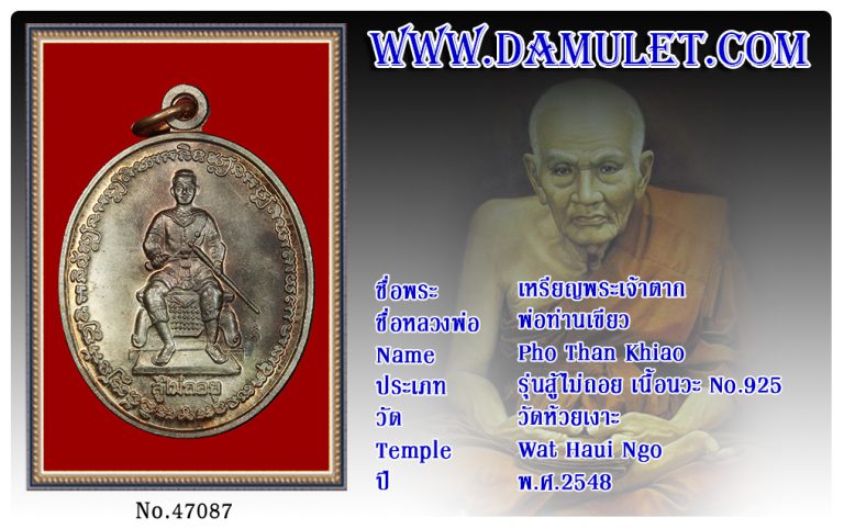 เหรียญพระเจ้าตาก พ่อท่านเขียว วัดห้วยเงาะ พ.ศ.2548