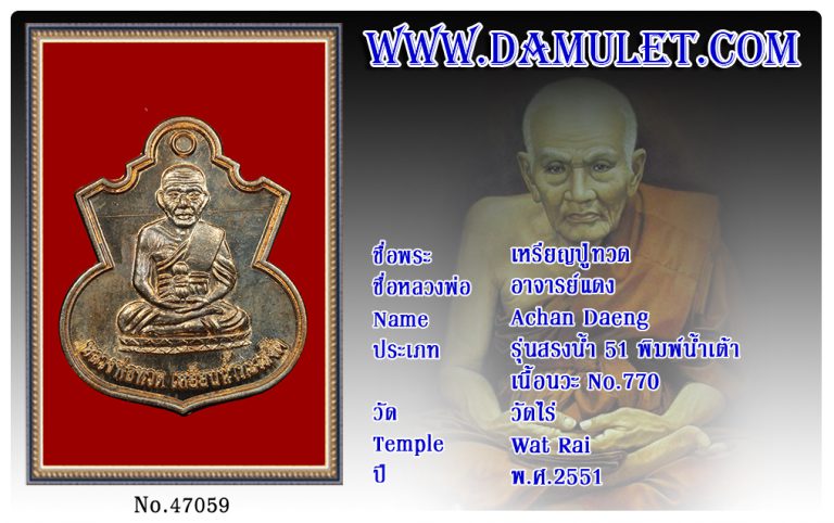 เหรียญปู่ทวด อาจารย์แดง วัดไร่ พ.ศ.2551