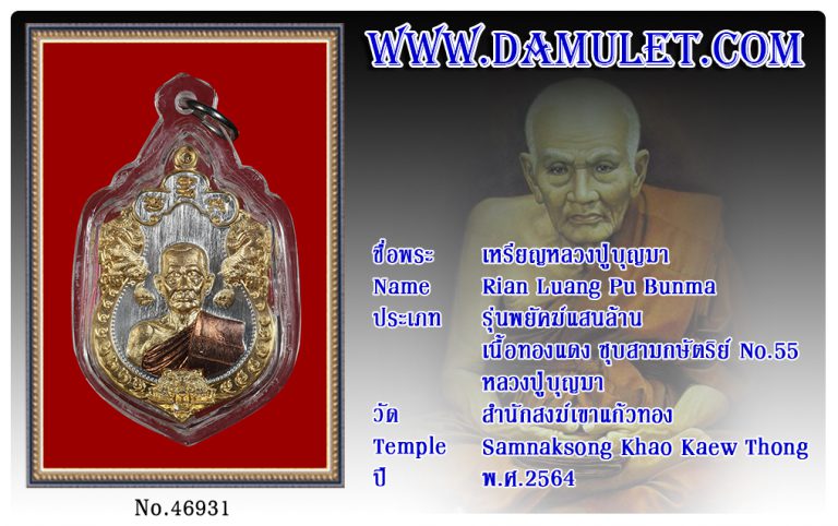 เหรียญหลวงปู่บุญมา สำนักสงฆ์เขาแก้วทอง พ.ศ.2564