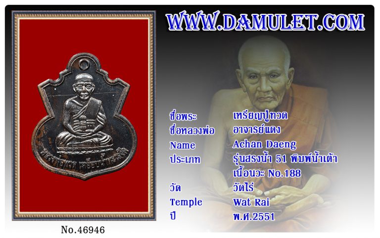 เหรียญปู่ทวด อาจารย์แดง วัดไร่ พ.ศ.2551