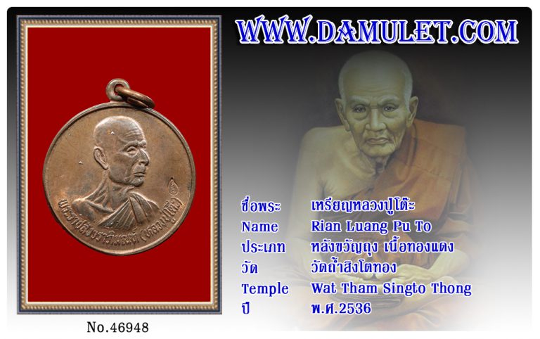 เหรียญหลวงปู่โต๊ะ วัดถ้ำสิงโตทอง พ.ศ.2536