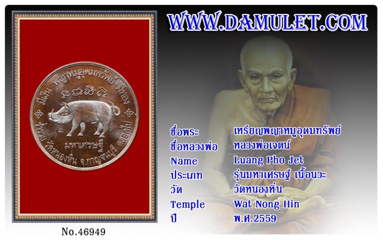 เหรียญพญาหมูอุดมทรัพย์ หลวงพ่อเจตน์ วัดหนองหิ่น พ.ศ.2559