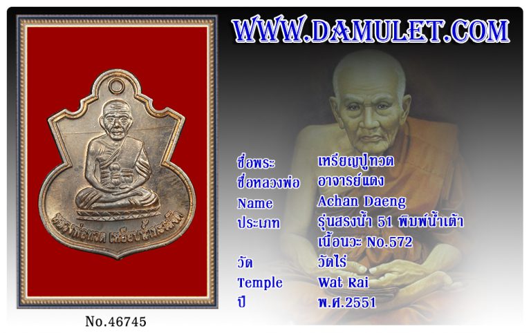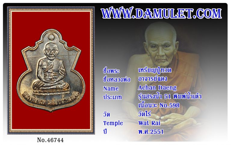 เหรียญปู่ทวด อาจารย์แดง วัดไร่ พ.ศ.2551