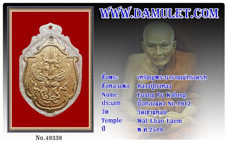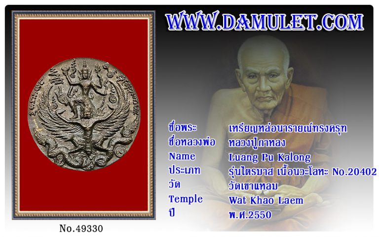 เหรียญพระนารายณ์ทรงครุฑ หลวงปู่กาหลง วัดเขาแหลม พ.ศ.2549