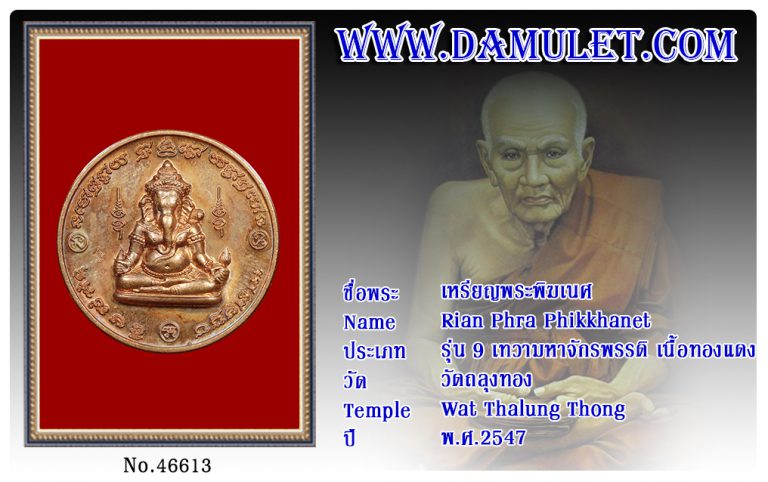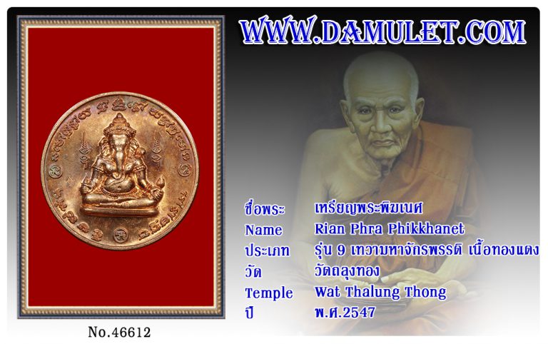 เหรียญพระพิฆเนศ วัดถลุงทอง พ.ศ.2547