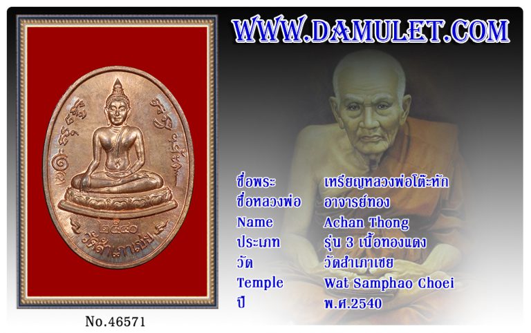 เหรียญหลวงพ่อโต๊ะหัก อาจารย์ทอง วัดสำเภาเชย พ.ศ.2540