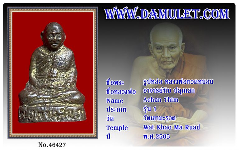รูปหล่อ หลวงพ่อทวดหนอน อาจารย์ทิม ปลุกเสก พ.ศ.วัดเขามะรวด 2505