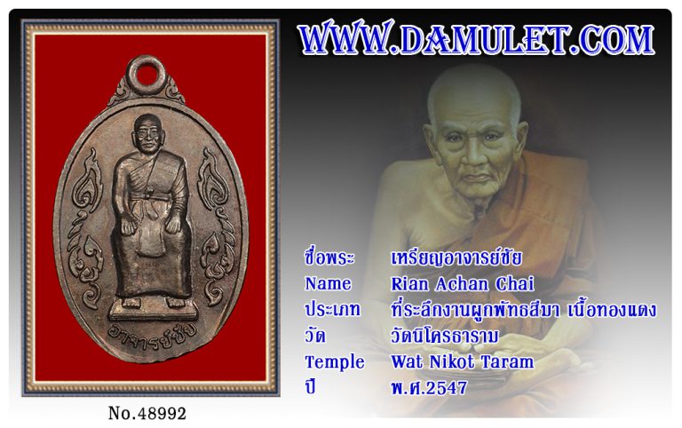 เหรียญอาจารย์ชัย วัดนิโครธาราม พ.ศ.2547