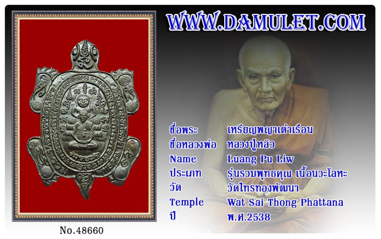 เหรียญพญาเต่าเรือน หลวงปู่หลิว วัดไทรทองพัฒนา พ.ศ.2538