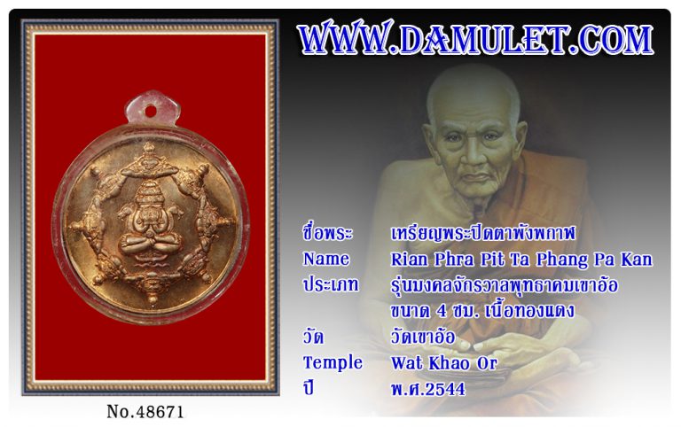 เหรียญพระปิดตาพังพกาฬ วัดเขาอ้อ พ.ศ.2544