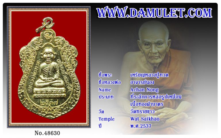 เหรียญหลวงปู่ทวด อาจารย์นอง วัดทรายขาว พ.ศ.2537