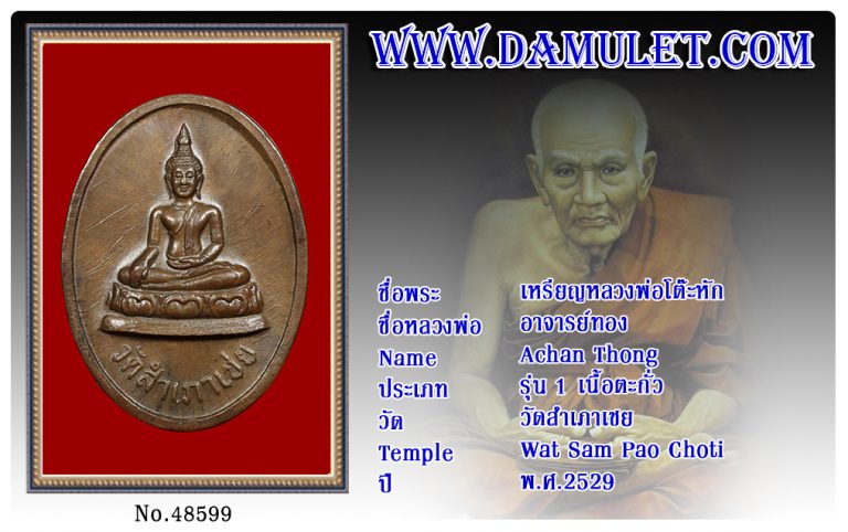 เหรียญหลวงพ่อโต๊ะหัก อาจารย์ทอง วัดสำเภาเชย พ.ศ.2529