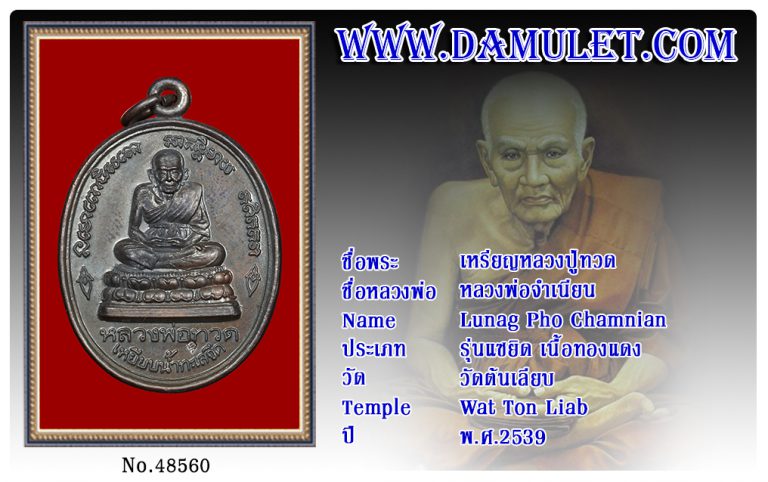 เหรียญหลวงปู่ทวด หลวงพ่อจำเนียน วัดต้นเลียบ พ.ศ.2539