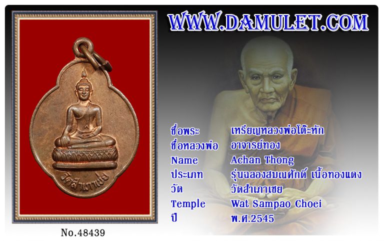 เหรียญหลวงพ่อโต๊ะหัก อาจารย์ทอง วัดสำเภาเชย พ.ศ.2545