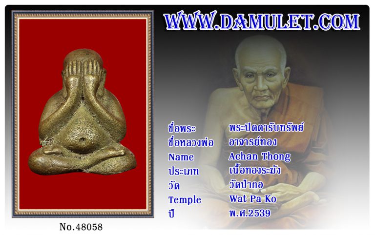 พระปิดตารับทรัพย์ หลวงปู่ทอง วัดป่ากอ พ.ศ.2539