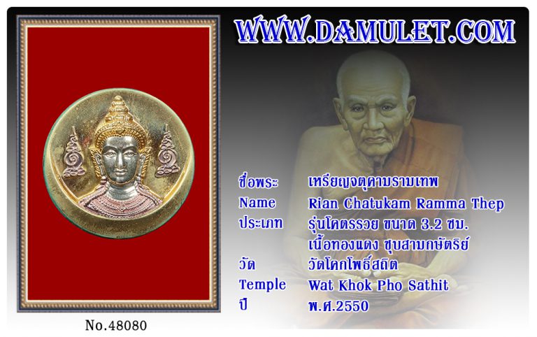 เหรียญจตุคามรามเทพ วัดโคกโพธิ์สถิต พ.ศ.2550