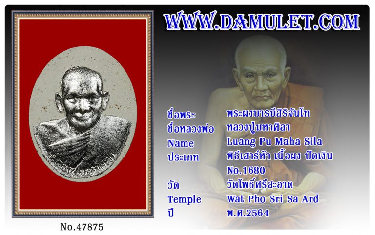 พระผงบารมีสิริจันโท หลวงปู่มหาศิลา วัดโพธิ์ศรีสะอาด พ.ศ.2564