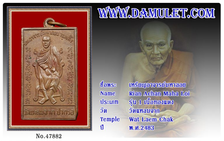 เหรียญอาจารย์มหาลอย วัดแหลมจาก พ.ศ.2483