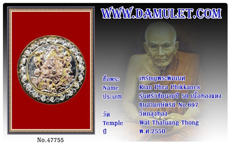 เหรียญพระพิฆเนศ วัดถลุงทอง พ.ศ.2550
