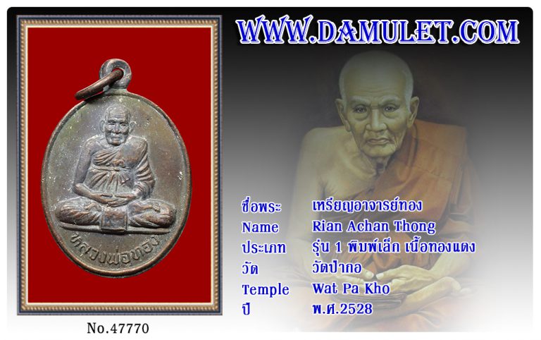 เหรียญอาจารย์ทอง วัดป่ากอ พ.ศ.2528