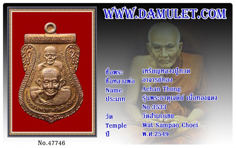 เหรึยญหลวงปู่ทวด อาจารย์ทอง วัดสำเภาเชย พ.ศ.2549