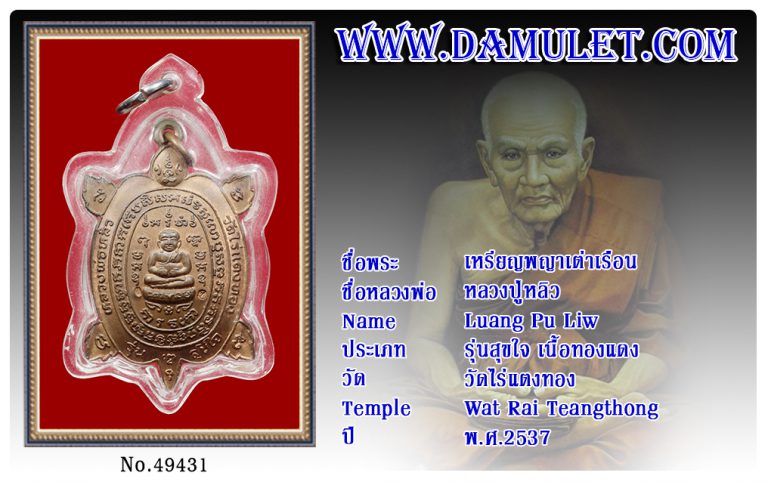 เหรียญพญาเต่าเรือน หลวงปู่หลิว วัดไร่แตงทอง พ.ศ.2537
