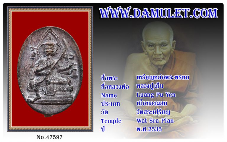 เหรียญหล่อพระพรหม หลวงปู่เย็น วัดสระเปรียญ พ.ศ.2535