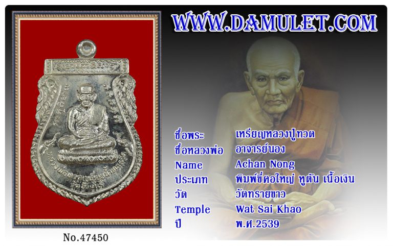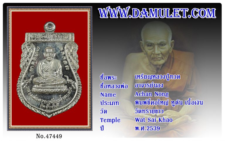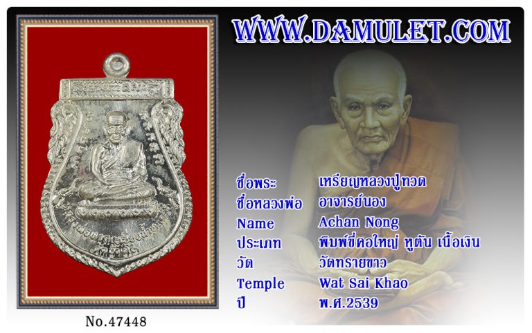 เหรียญหลวงปู่ทวด อาจารย์นอง วัดทรายขาว พ.ศ.2539