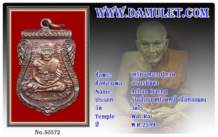 เหรียญหลวงปู่ทวด อาจารย์แดง วัดไร่ พ.ศ.2549