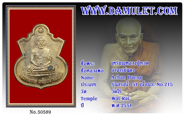 เหรียญหลวงปู่ทวด อาจารย์แดง วัดไร่ พ.ศ.2551
