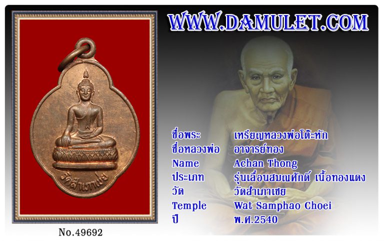 เหรียญหลวงพ่อโต๊ะหัก อาจารย์ทอง วัดสำเภาเชย พ.ศ.2540