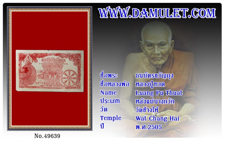 ธนบัตรขวัญถุง หลวงปู่ทวด วัดช้างให้ พ.ศ.2505
