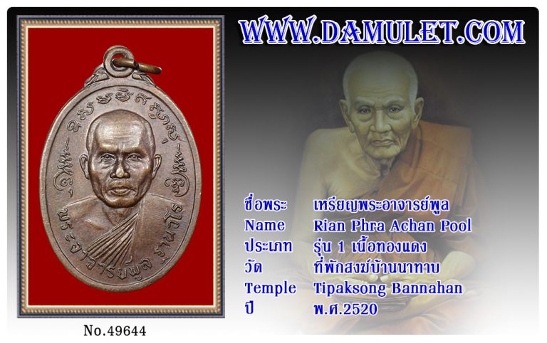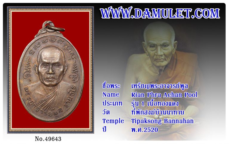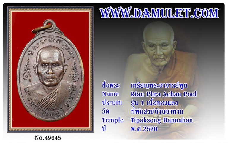 เหรียญพระอาจารย์พูล ที่พักสงฆ์บ้านนาทาบ พ.ศ.2520