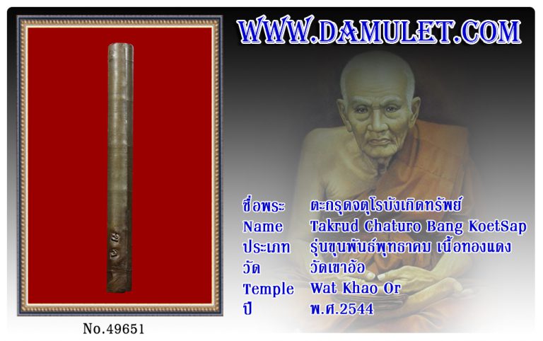 ตะกรุดจตุโรบังเกิดทรัพย์ วัดเขาอ้อ พ.ศ.2544