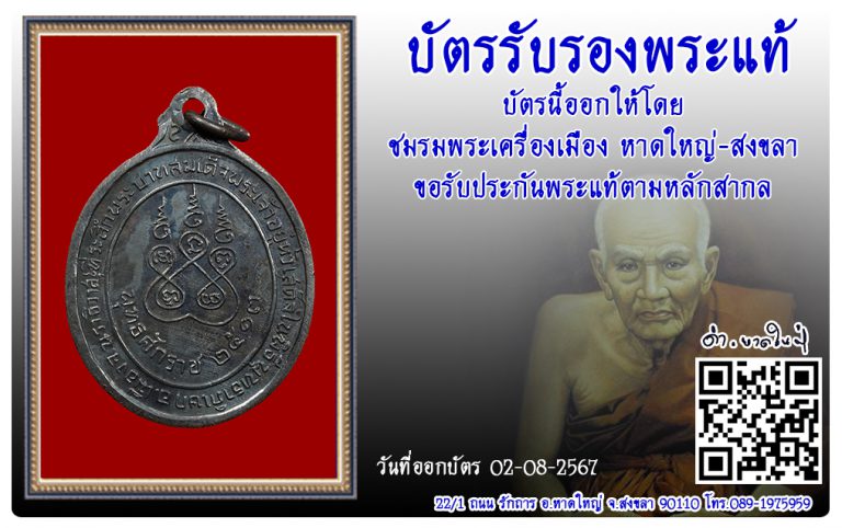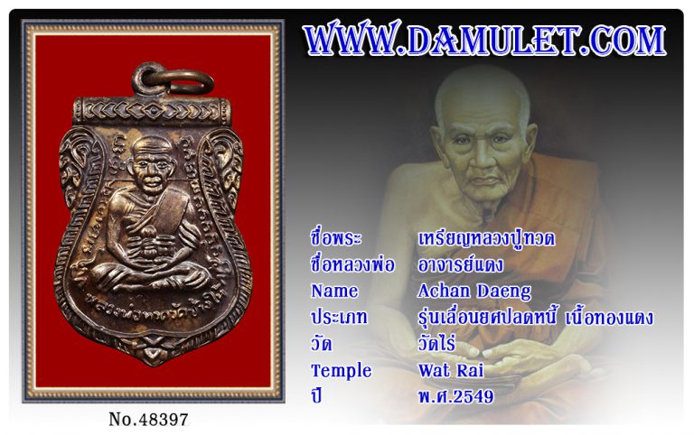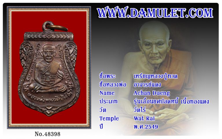 เหรียญหลวงปู่ทวด อาจารย์แดง วัดไร่ พ.ศ.2549