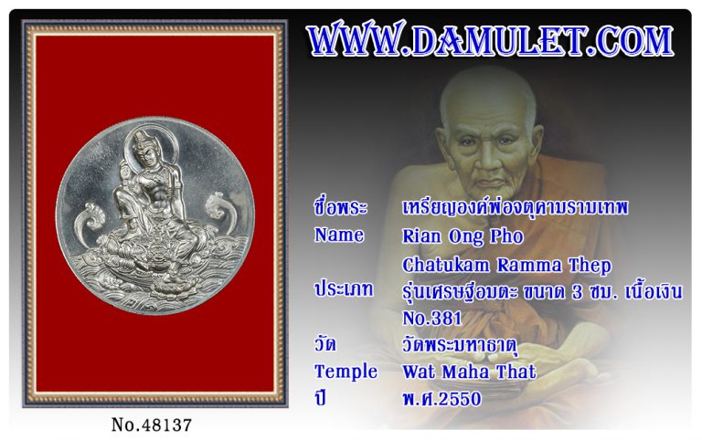เหรียญองค์พ่อจตุคามรามเทพ วัดหน้าพระบรมธาตุ พ.ศ.2550