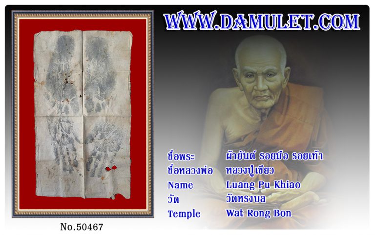 ผ้ายันต์ รอยมือ รอยเท้า หลวงปู่เขียว วัดหรงบล