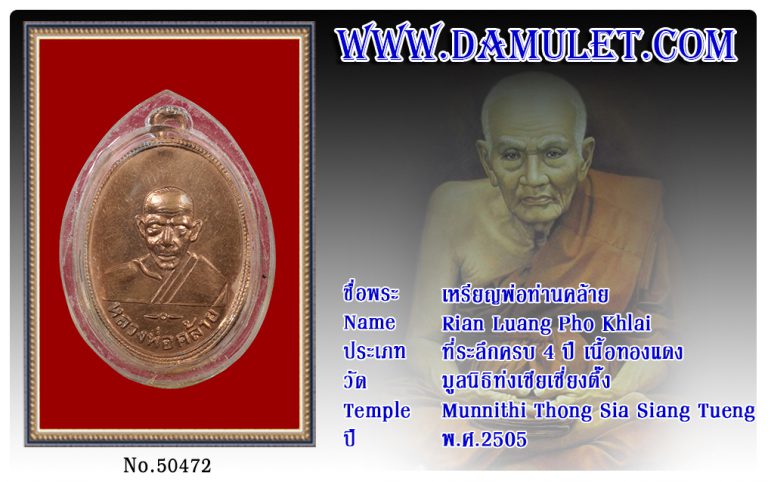 เหรียญพ่อท่านคล้าย มูลนิธิท่งเซียเซี่ยงตึ๊ง พ.ศ.2505