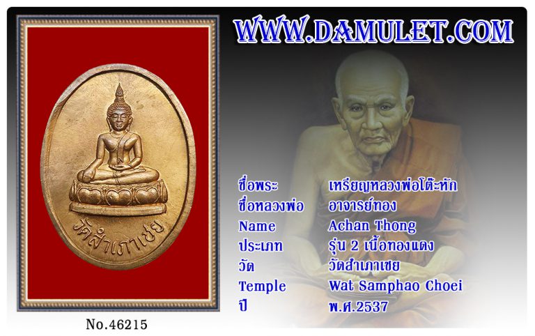 เหรียญหลวงพ่อโต๊ะหัก อาจารย์ทอง วัดสำเภาเชย พ.ศ.2537