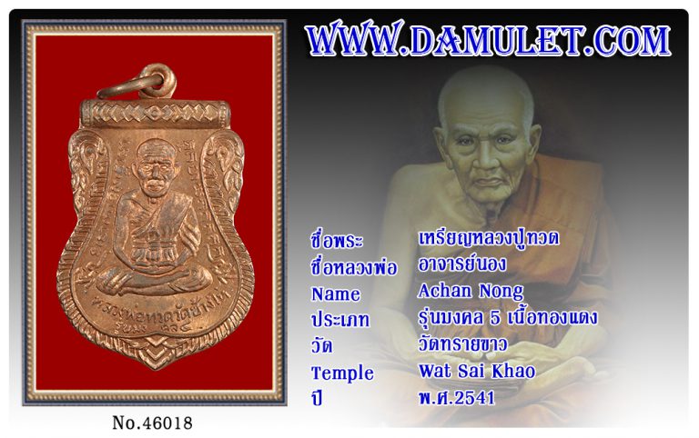 เหรียญหลวงปู่ทวด อาจารย์นอง วัดทรายขาว พ.ศ.2541