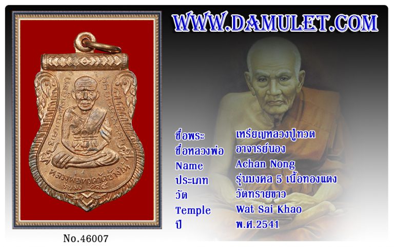 เหรียญหลวงปู่ทวด อาจารย์นอง วัดทรายขาว พ.ศ.2541