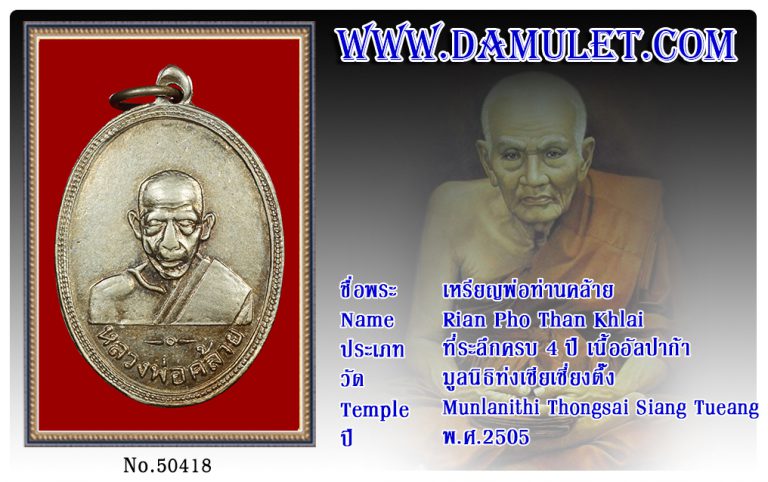 เหรียญพ่อท่านคล้าย มูลนิธิท่งเซียเซี่ยงตึ๊ง พ.ศ.2505