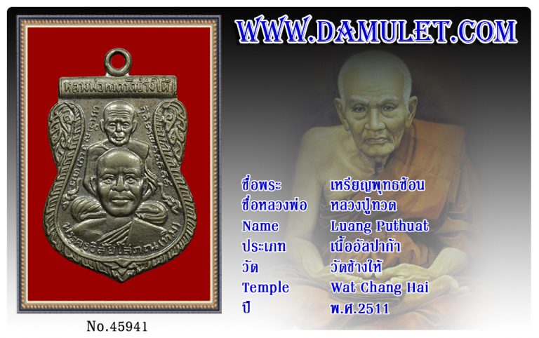 เหรียญพุทธซ้อน หลวงปู่ทวด พ.ศ.วัดช้างให้ 2511
