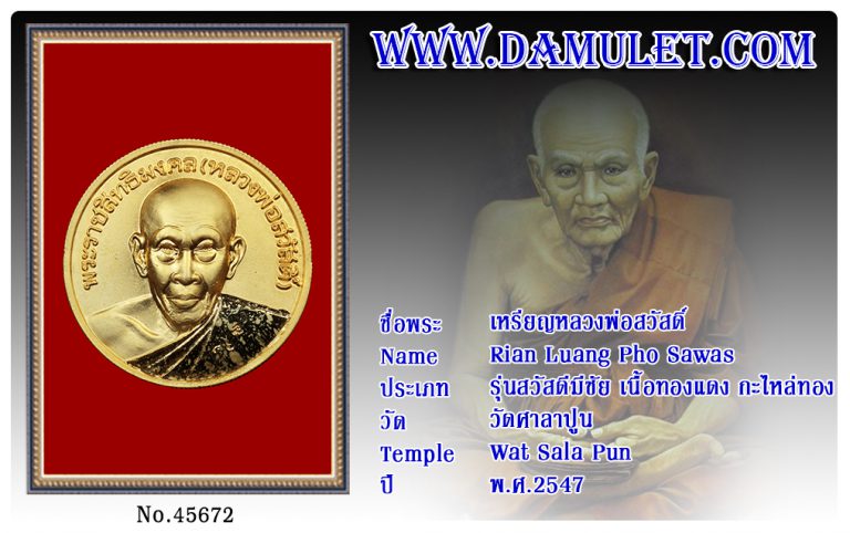 เหรียญหลวงพ่อสวัสดิ์ วัดศาลาปูน พ.ศ.2547