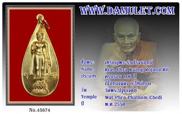 เหรียญพระร่วงโรจนฤทธิ์ วัดพระปฐมเจดีย์ พ.ศ.2558