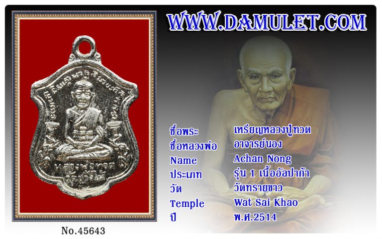 เหรียญหลวงปู่ทวด อาจารย์นอง วัดทรายขาว พ.ศ.2514