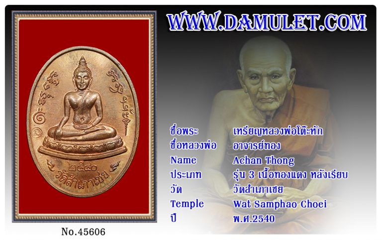 เหรียญหลวงพ่อโต๊ะหัก อาจารย์ทอง วัดสำเภาเชย พ.ศ.2540