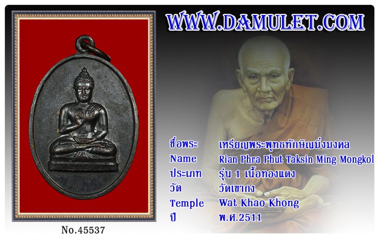 เหรียญพระพุทธทักษิณมิ่งมงคล วัดเขากง พ.ศ.2511