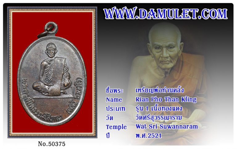 เหรียญพ่อท่านคลิ้ง วัดศรีสุวรรณาราม พ.ศ.2521