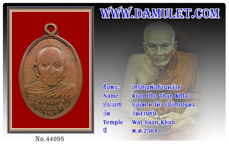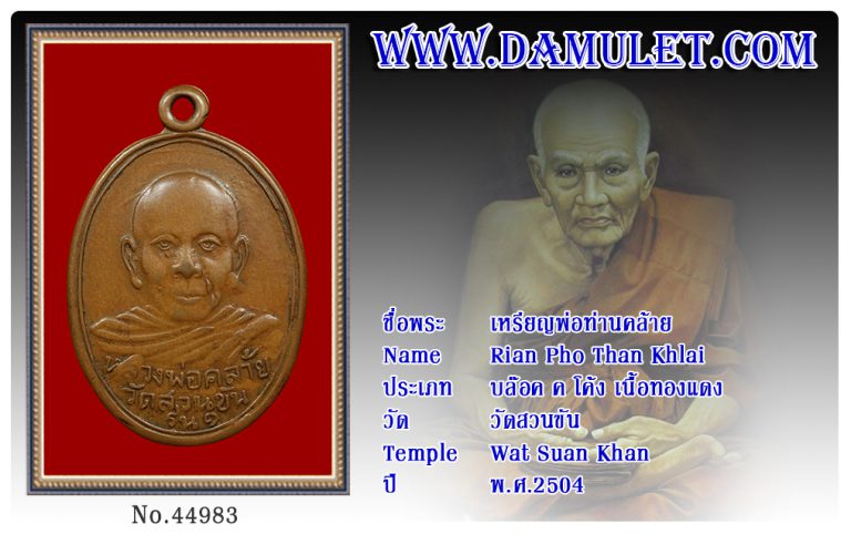 เหรียญพ่อท่านคล้าย วัดสวนขัน พ.ศ.2504